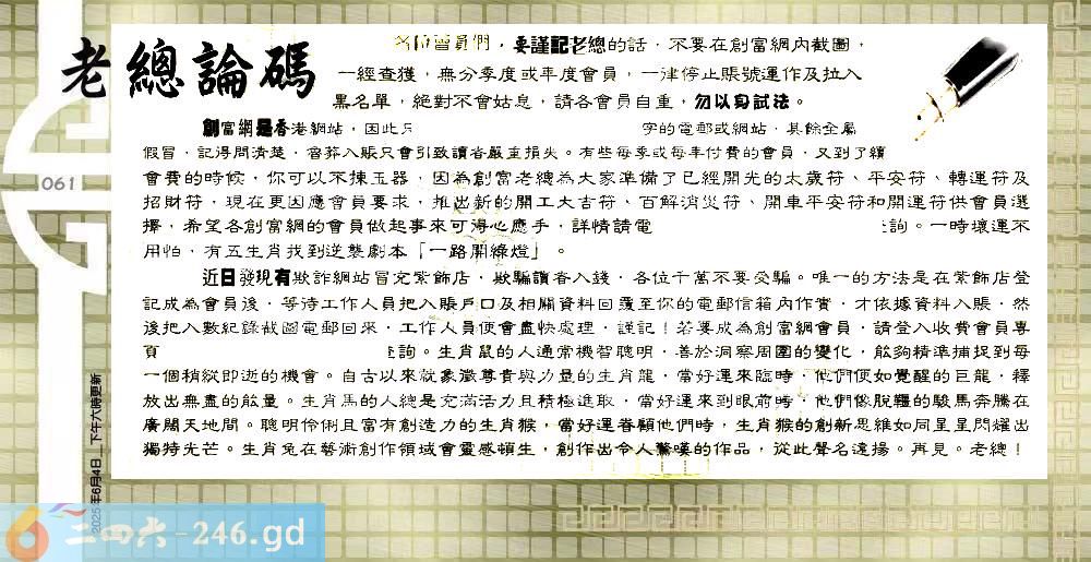 061期:六合皇金句/老总论码/萧公子/林大师/五行夺码/老总信箱截图