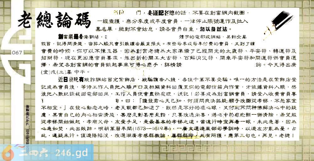 067期:六合皇金句/老总论码/萧公子/林大师/五行夺码/老总信箱截图