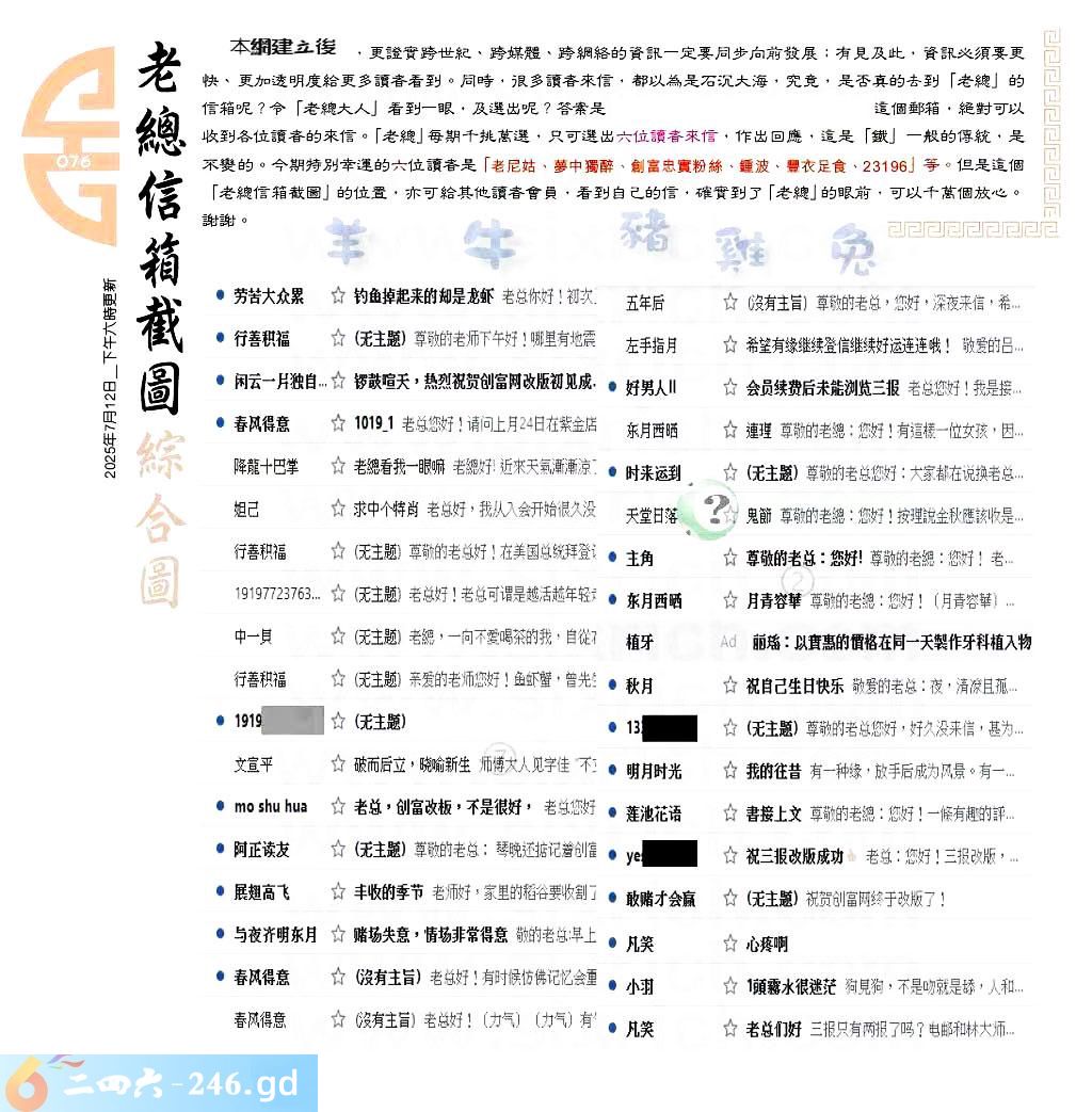 076期:六合皇金句/老总论码/萧公子/林大师/五行夺码/老总信箱截图