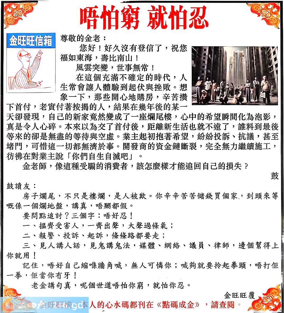 101期:金旺旺信箱彩民推荐→→《唔怕窮 就怕忍》