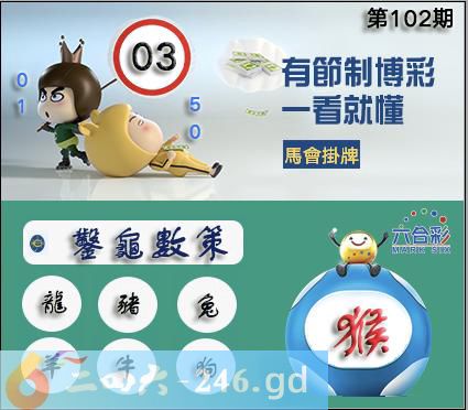 102期正版彩图挂:03爆:猴挂牌成语:凿龟数策挂牌出肖:龙猪兔羊牛狗
