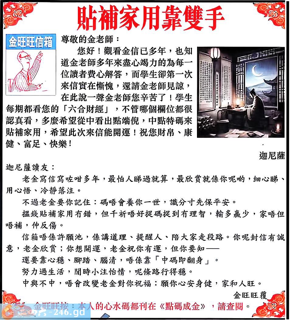 116期:金旺旺信箱彩民推荐→→《貼補家用靠雙手》