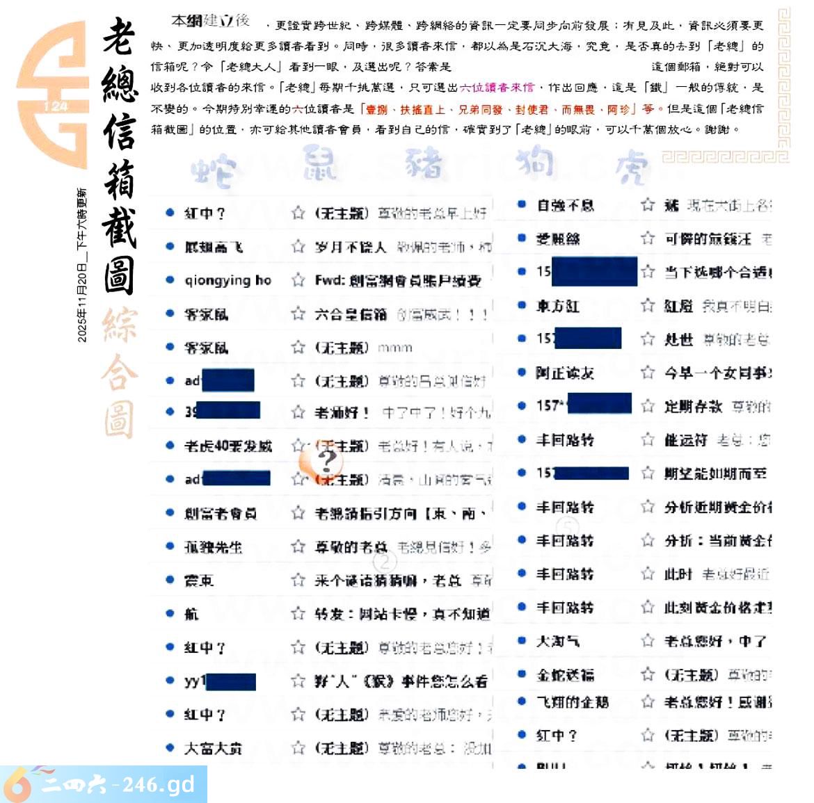 124期:六合皇金句/老总论码/萧公子/林大师/五行夺码/老总信箱截图