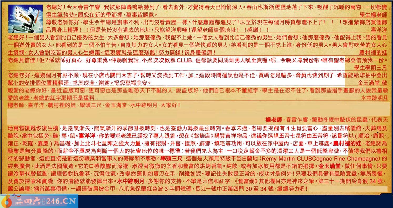 第036期《六合皇信箱文字版》10000%正確!!!正版二四六論壇*精心製作!!!