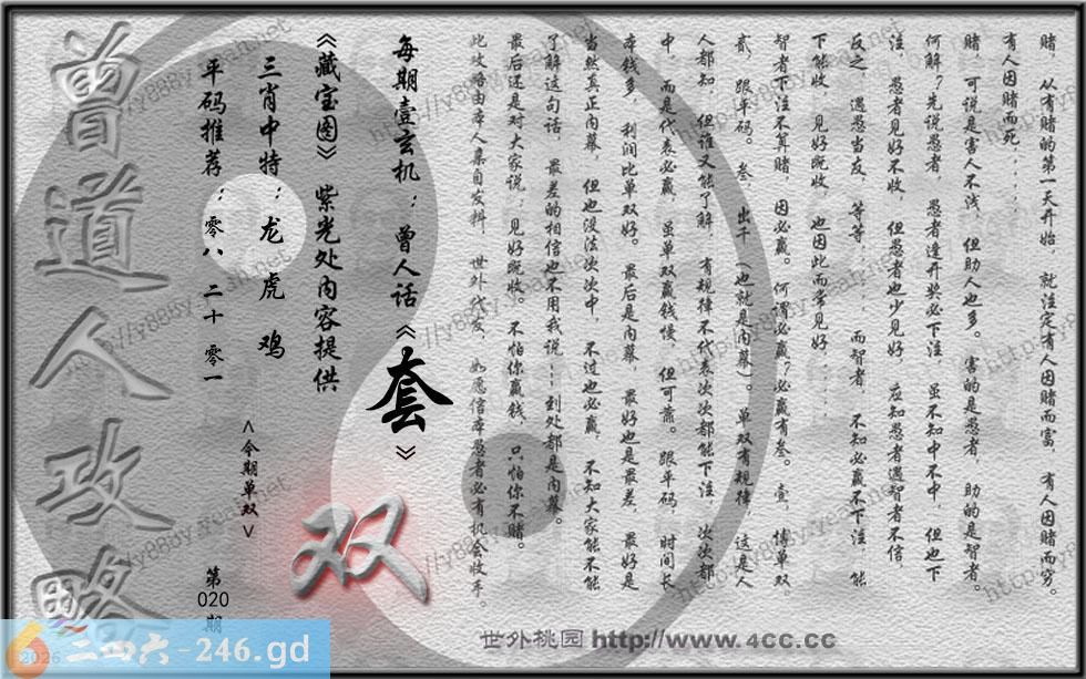 020期藏寶圖 新:可能同读远游无 老:坐客无毡醉不知 禁:猴 禁:7尾 玄機字:《套》