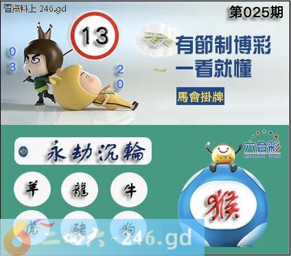 025期正版彩图挂:13 爆:猴 挂牌成语:永劫沉轮 挂牌出肖:羊龙牛虎猪狗
