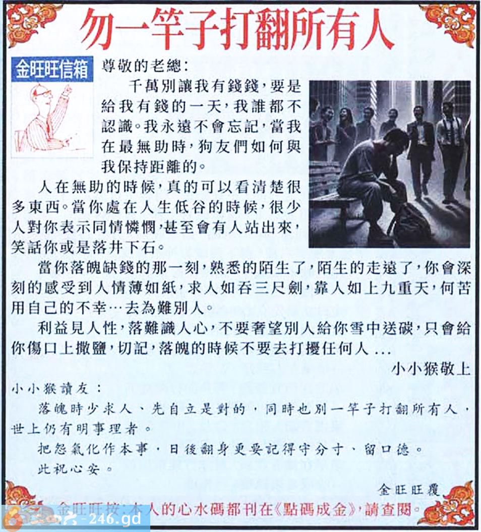 027期:金旺旺信箱彩民推荐→→《勿一竿子打翻所有人》