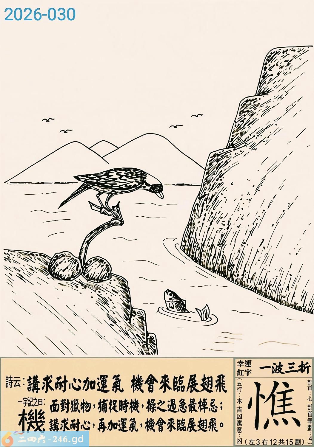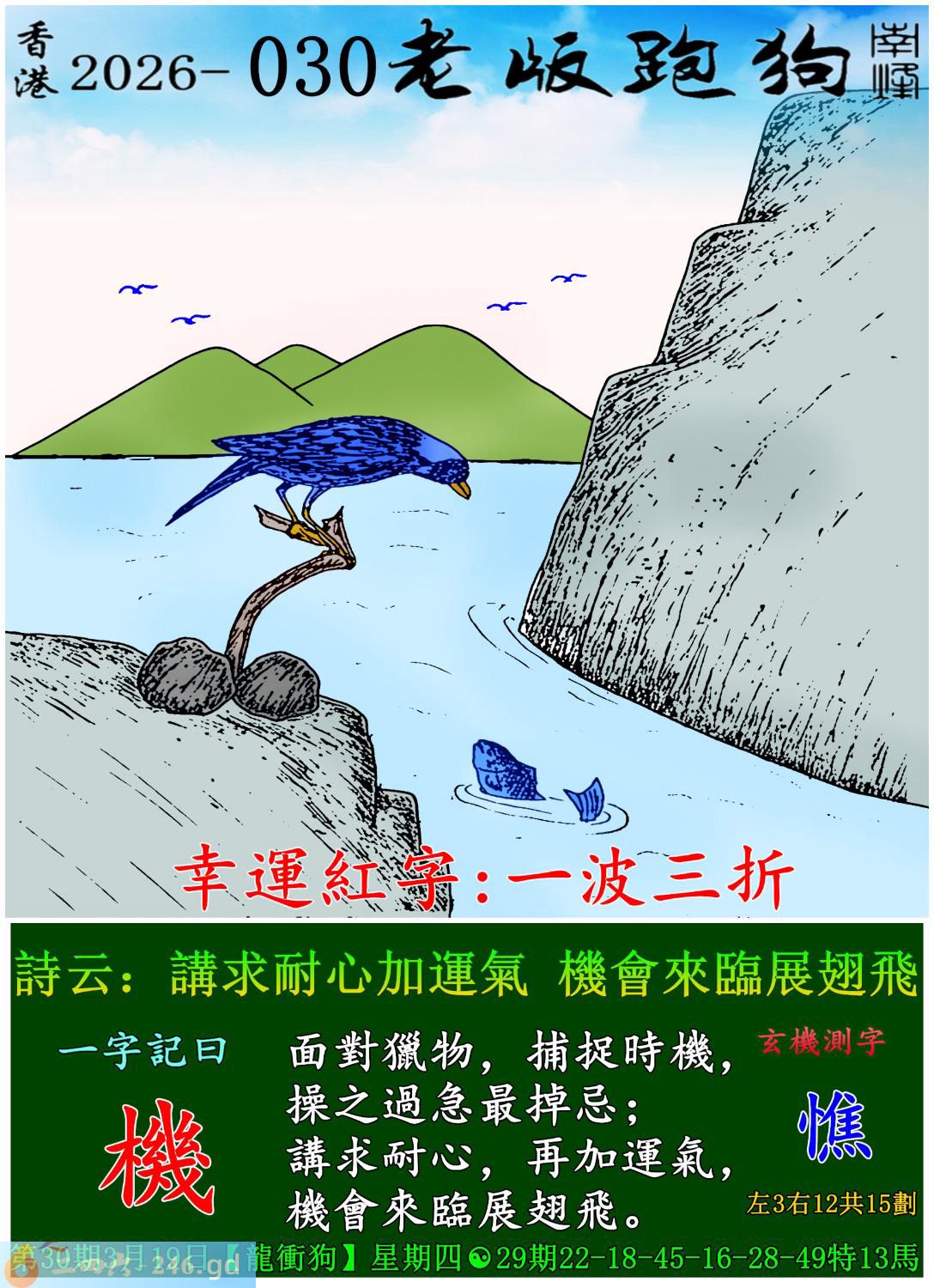 本帖最后由小歪于2026-3-1820:28编辑 2026年3月19日星期四農歷二月初一長流水龍日沖狗 030期:老版跑狗玄機一字記之曰:【機】 詩云:講求耐心加運氣,機會來臨展翅飛。 面對獵物,捕捉時機,操之過急最掉忌; 講求耐心,再加運氣,機會來臨展翅飛。 玄機測字:《憔》 密圖詩:三個和尚水喝 記:一江春水向東流 特碼大小單雙句:八戒戲嫦娥 今期必中:张飛 030期:特碼歇后語 小孩吃花生-----满把抓 030期正版四字梅花诗:单枪匹马。 030期火车头:烧伤猴。诗:虎龙狗伤,三七一八比短长。 030期香港第一手欲钱料:水。 030期曾道人说:“小团圆?” 030期另版四字梅花诗:羊头狗肉。 030期香港第一手欲钱料:欲钱看古怪的动物。 030期曾道人说:“为什么女人喜欢跳舞”? 030期:二字经:绿红。 030期:汽球是特码 030期智力金壤:塞翁失馬 030期紅字:步罡踏斗 030期暗碼:01283645 030期一語中特:三長兩短 玄機發財圖:翱翔雲間騰雲駕霧圖中明龍紅綠 030期:藏寶圖 新:挂冠目在胜分司 老:角声吹彻小梅花 禁:鸡禁:0尾玄机字《泊》 2026年030期【生活幽默】版 〖打耳光〗 兩個傻子坐在一起,一個傻子突然給了另一個傻子一記重重的耳光。 被打的傻子問:"你是真打還是開玩笑?" 打人的傻子生氣了:"當然是真打!"被打的傻子鬆口氣,接着説:"那就好,幸虧是真打,我是不和人開玩笑的。"