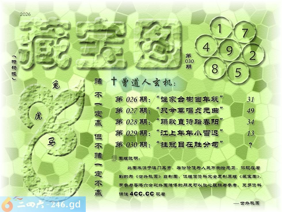 030期藏寶圖 新:挂冠目在胜分司 老:角声吹彻小梅花 禁:鸡 禁:0尾 玄機字:《泊》