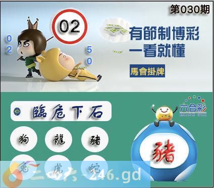 030期正版彩图挂:02 爆:猪 挂牌成语:临危下石 挂牌出肖:狗龙猪兔虎蛇