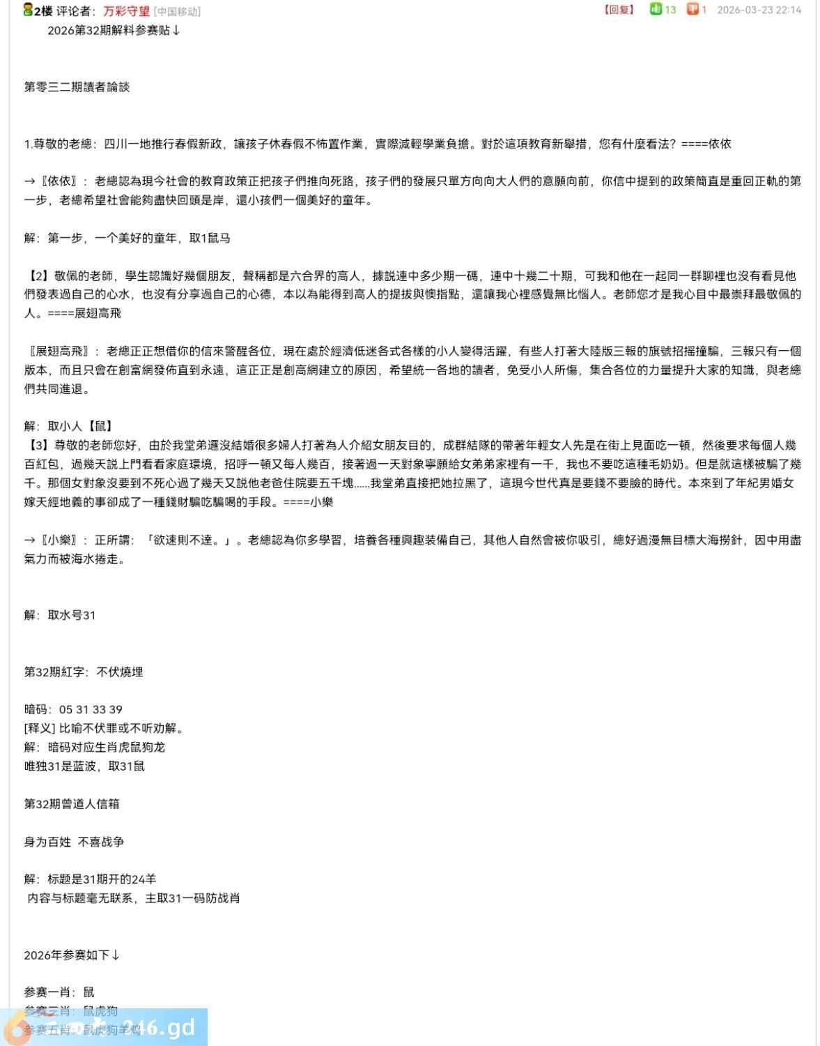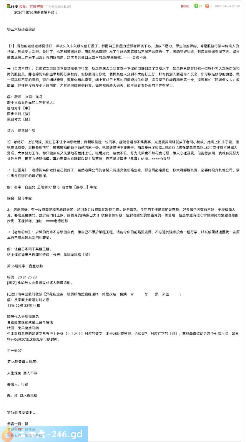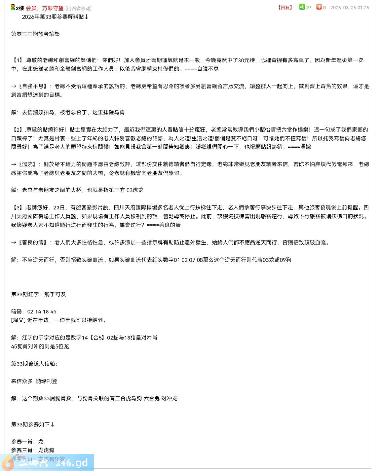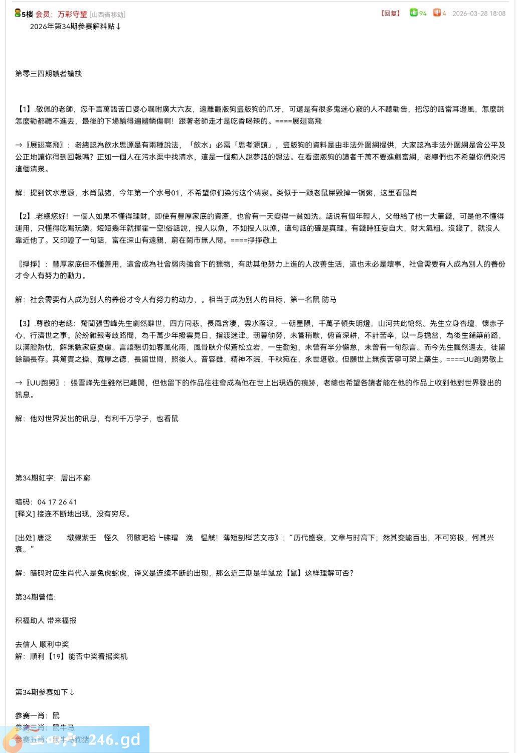分享隔壁解料参赛区一个连中5期一肖中特的神人!神就神在发5期就中了5期一肖中特。解析的这3份料,尤其是他把六信红字释义结合4个暗码玩的出神入化。截图发贴分享是想六友学习学习思路,看自己往后的六合生涯能不能吸收运用了。